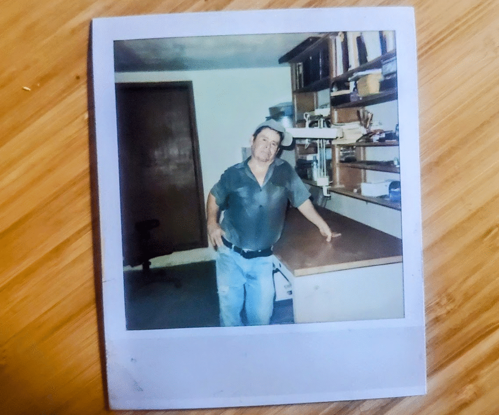 Fastforward: por ahí de marzo 2024 durante una visita espontanea al lugar, noté el escritorio, abrí los cajones y estuve revisando algunos papeles que todavía quedan por ahí, ¡y zas! encontré la instantánea que le tomé a mi padre y que coincidentemente es la fotografía Polaroid más reciente que he tomado desde entonces; estuvo durante 20 años guardada en ese lugar.