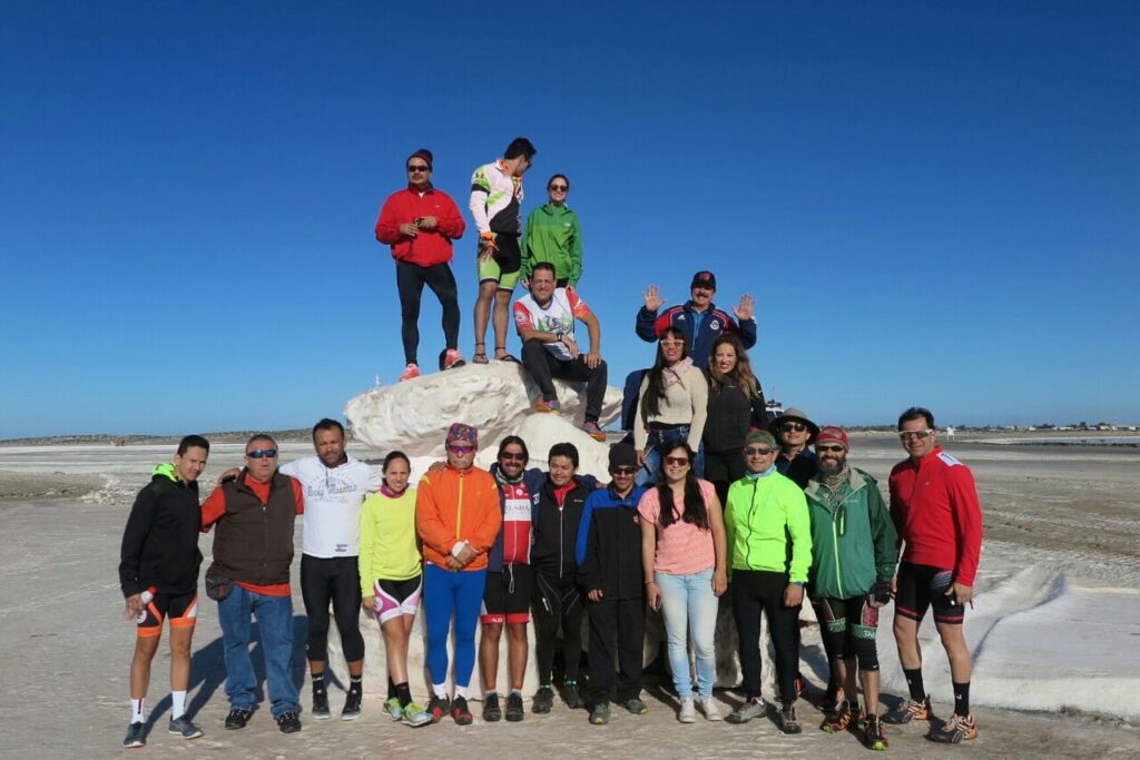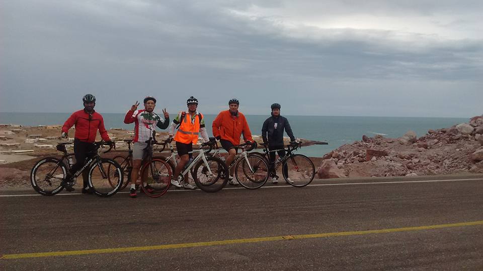 En el tramo Insurgentes-Constitución, venia yo en la cola del pelotón, sentí que no podía sostener el paso, hice un ademan en señal de renuncia y me solté… No sé como, no sé cuando pero Karla estaba tras de mí voceando «Fer, es sólo un poco de dolor, si te quedas te va a costar más. Pégate, no te dejes».Lo siguiente que recuerdo es pedalear tras ella y, al voltear hacia atrás el resto del pelotón se había quedado, me dijo «ya te viniste, ya te jodiste». En ciudad Constitución me encontré con mi colega ingeniero Edgar de la Rosa, un amigo de la universidad al cual no miraba desde hace como quince años. Esa tarde, después de cenar, hubo arrastre hasta La Paz, nos brincábamos esa sección porque prácticamente no había carretera —pensamos: mañana en La Paz vamos a pedalear al rededor para compensar la distancia— !huy sí, ‘pedalear’ como no!
